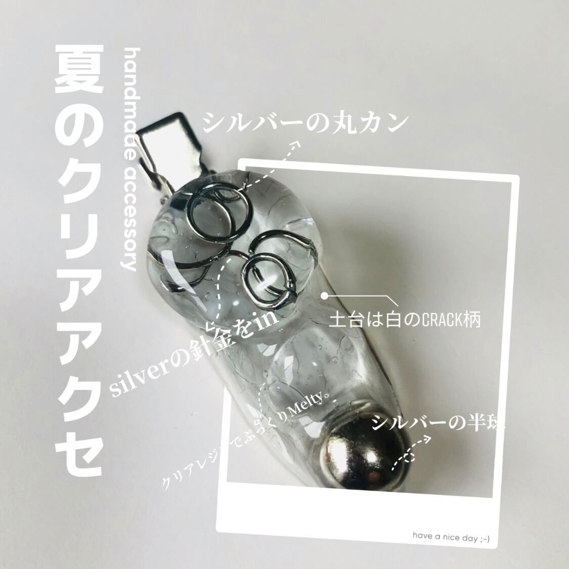 夏は涼しげに見えるシルバー✖️クリアアイテムのACCESSORYでオシャレを楽しみましょう。