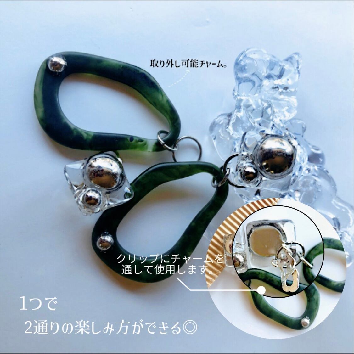 マーブルカラーのGreenチャームが